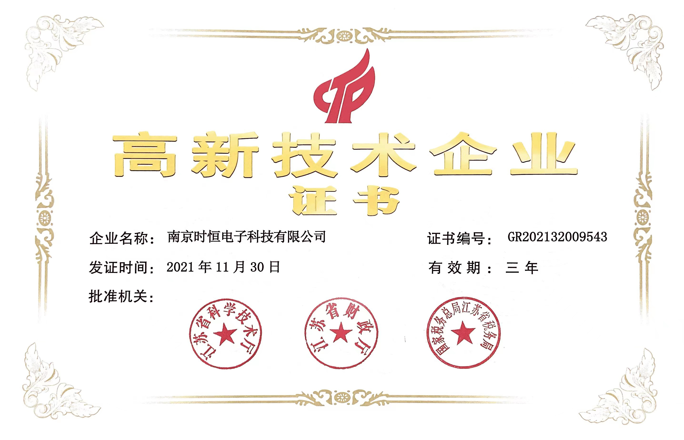 國家高新技術企業證書