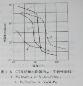 為滿足不同條件下的使用要求,通過對材料成分的調(diào)整便可得到不同溫度特性的CTR熱敏電阻。圖1-6給出了由一些不同材料制成的CTR熱敏電阻的溫度特性曲線。由于CTR熱敏電阻溫度特性存在劇變性,因而不能像NTC熱敏電阻那樣用于寬范圍的溫度控制,只能在特定的溫區(qū)內(nèi)使用。